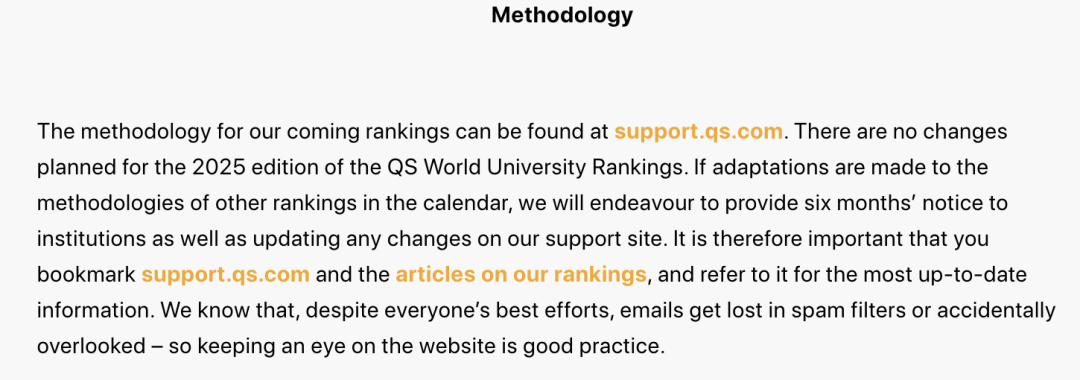 2025QS和2024年QS的排名方法完全一致,没有变化,确保做到公平公正!