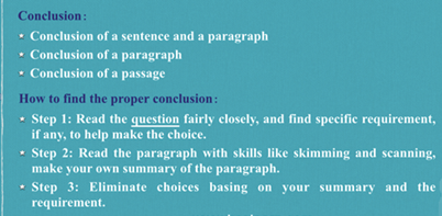 对于以上三种题目类别,我们在解题的时候比起通读全文,更重要的是要做到精读题干的要求以及关键段落的快速扫读,在做题时重点找题干中针对conclusion给出的特殊限定,