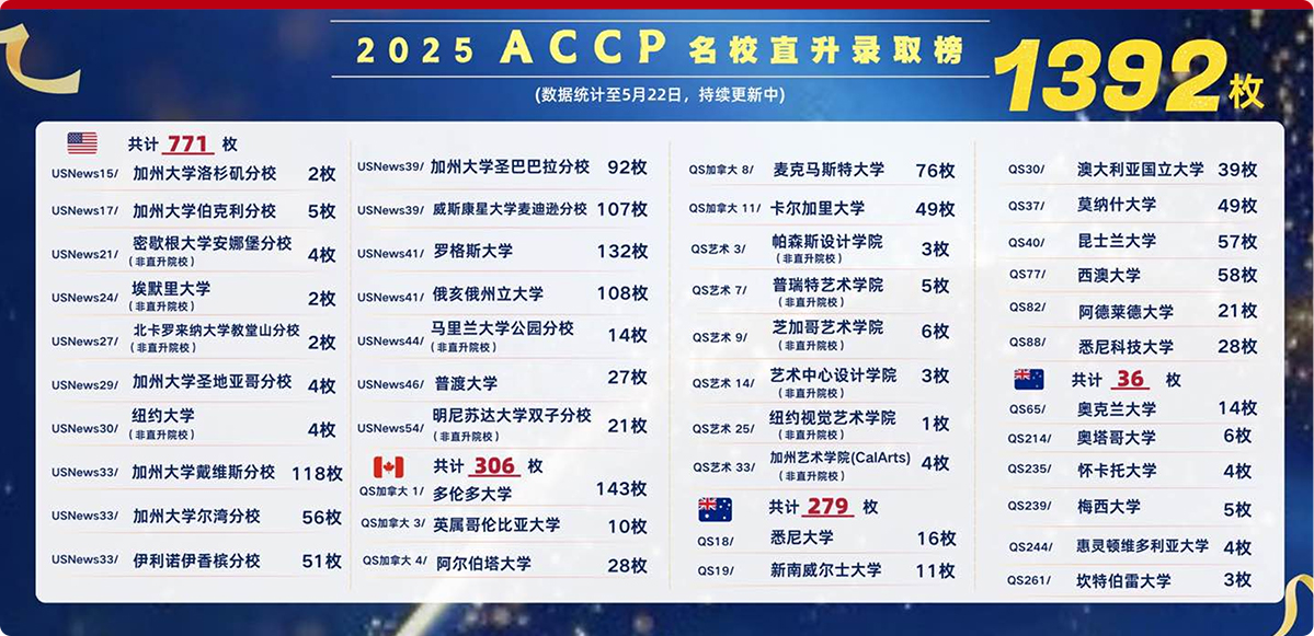 ACCP(Advanced College Credit Program)双学分课程是美国高中Ready Global Academy(简称RGA)提供的美国高中高阶课程—Dual Credit 双学分课程。高中或大一学生完成8~10门双学分课程,能同时获得美高毕业证、美高成绩单、大学成绩单,并在达到升读要求后可以免标化成绩携带学分进入美国、加拿大等名校。